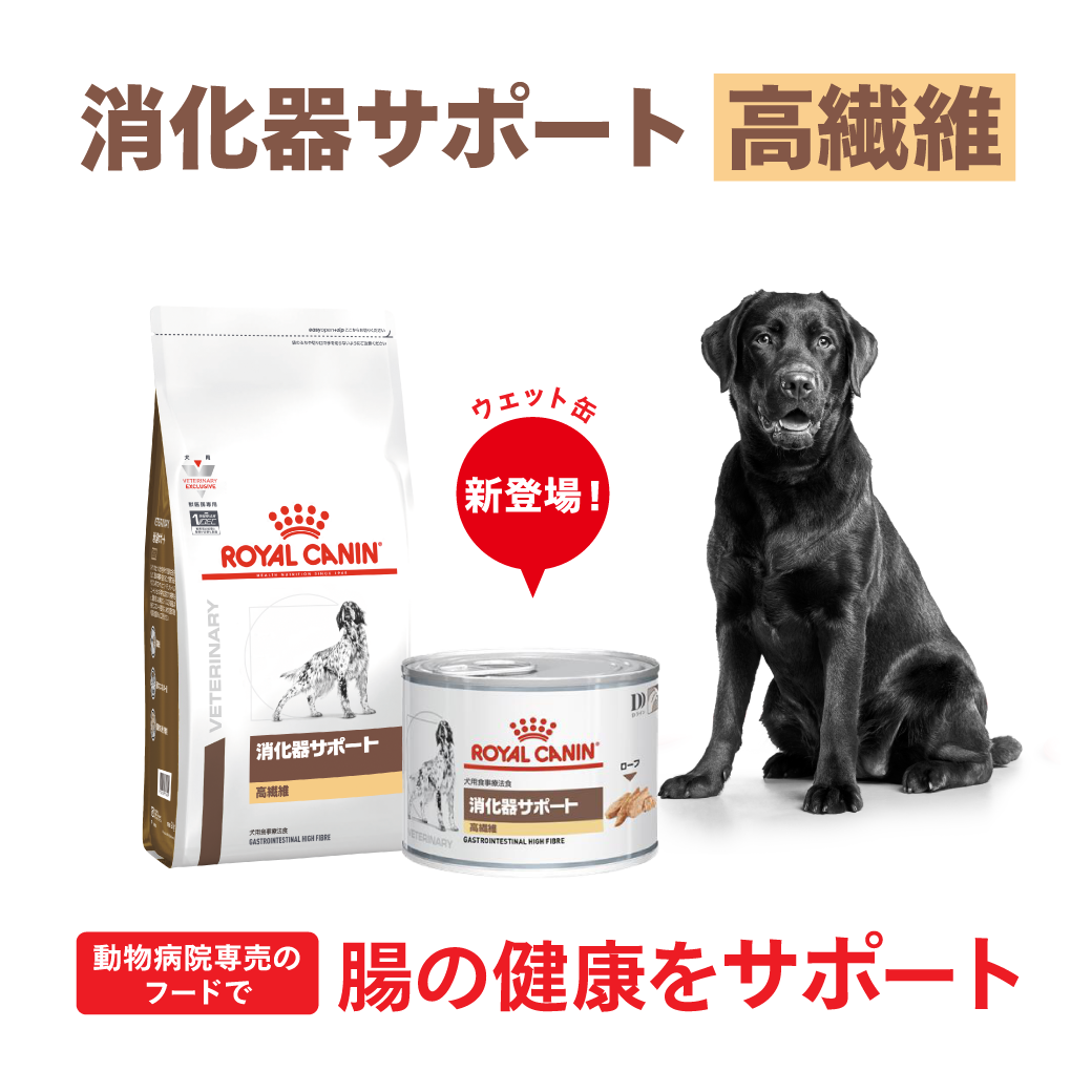 「犬用 消化器サポート 高繊維」は、下痢(食物繊維の増量が好ましい場合)や大腸性疾患の犬に給与することを目的として、特別に調製された食事療法食です。